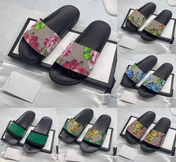 designer slippers women men fashion sandals luxury floral brand slipper blooms rubber flats summer beach shoes loafers gear bottom1929635, Black