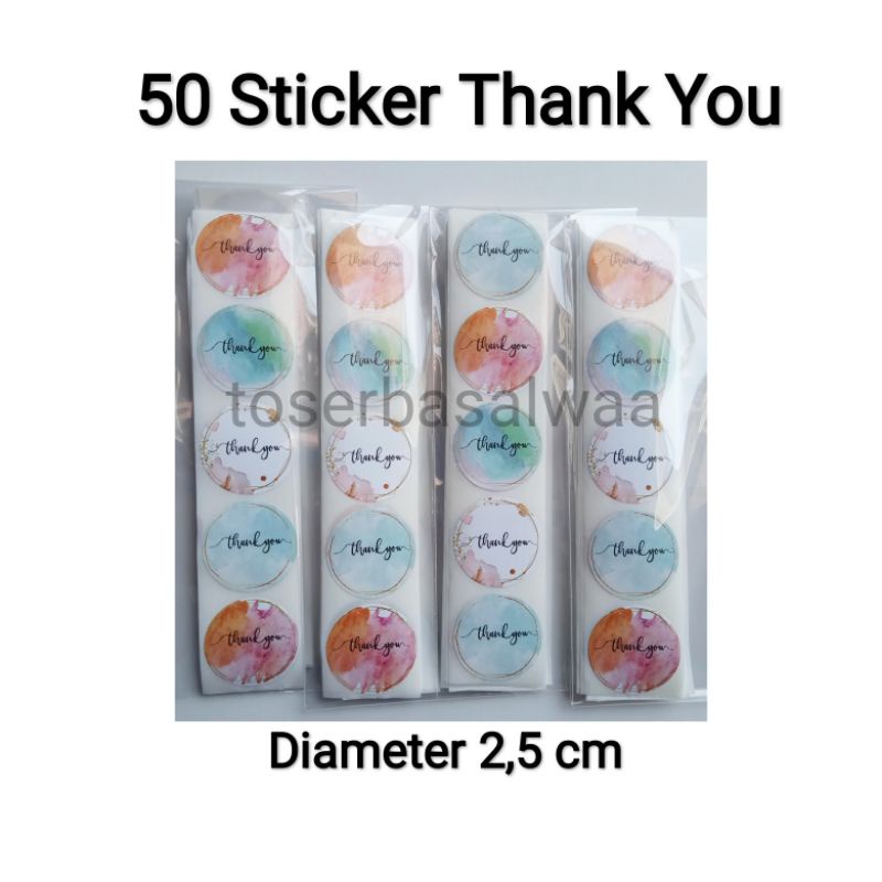 Eceran sticker thank you isi 50pcs sticker diameter 2,5cm. Label thank you untuk snack box atau produk jualan anda.