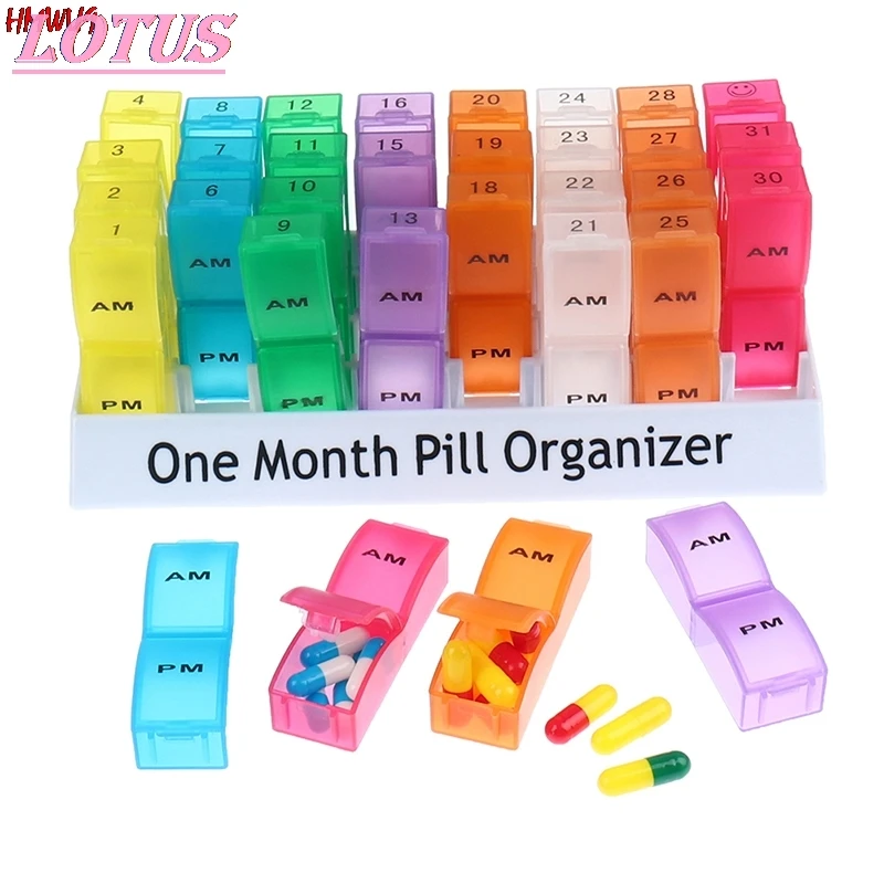 32 Slots Monthly Pill Organizer Box Medicine Container Storage Case Travel Daily Pill Storage Box
