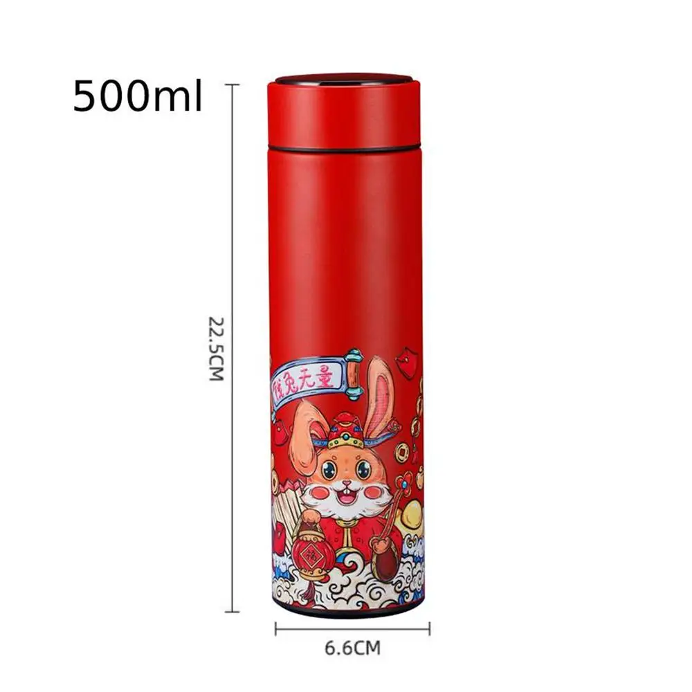 500 мл нержавеющая сталь изоляционная чашка Кролик Год умный температурный дисплей Китайский стиль изоляционная чашка Новогодний фестиваль...