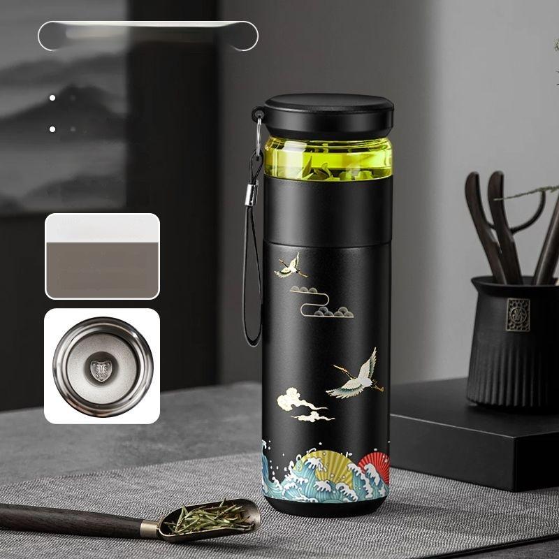 500 мл термос из нержавеющей стали с крышкой портативные термосы с узором в виде красного журавля для кофе, чая, воды 500ML