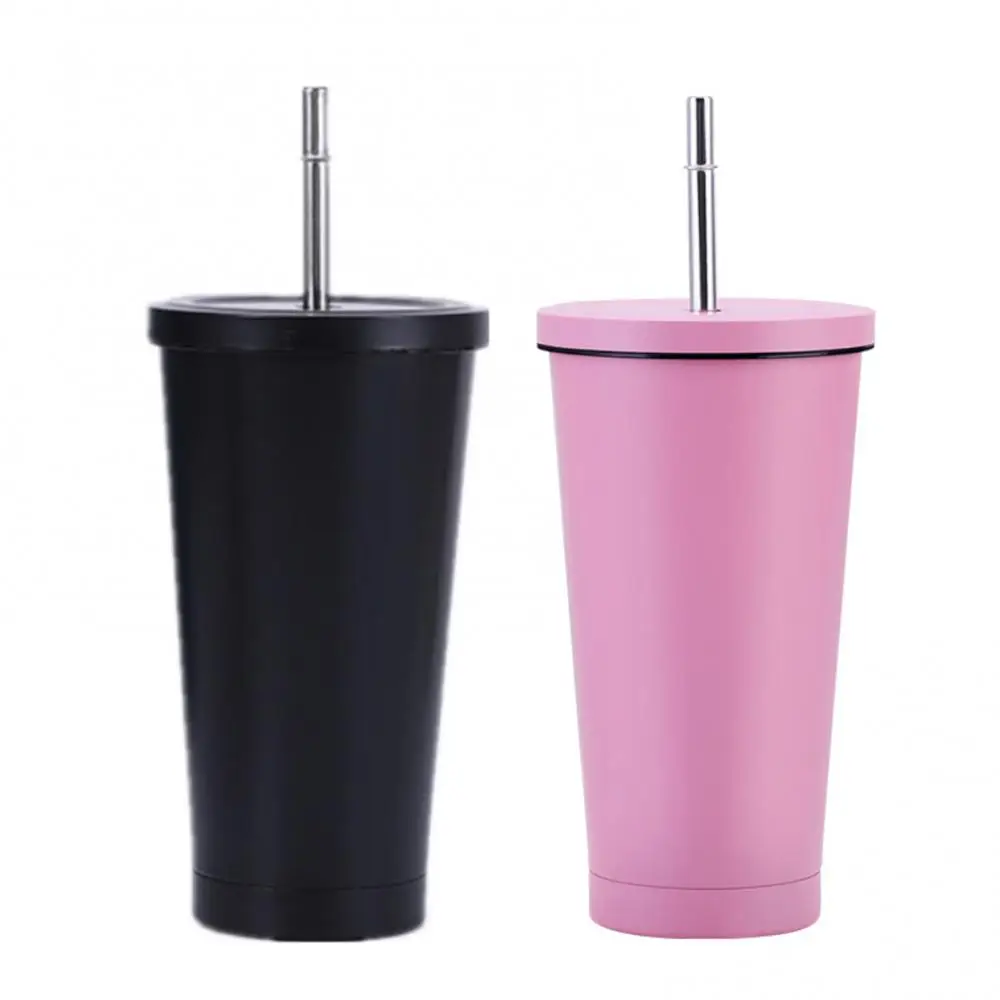 500 мл 304 соломенная чашка из нержавеющей стали, большая емкость, вакуумная фляжка, автомобильная портативная кофейная чашка, практичная портативная чашка для льда и напитков