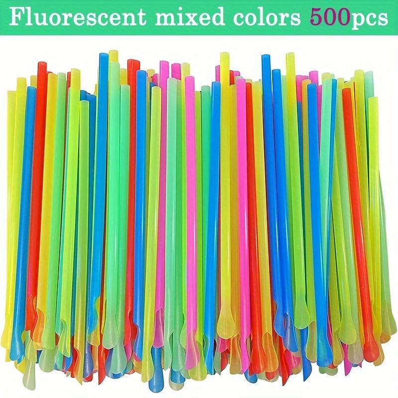 500 шт. Неоновые одноразовые пластиковые соломинки (многоразовый) 7.87*0.24 Дюймов, Кофейные соломинки, Кухонная посуда Соломинки для перемешивания, Подходят для использования в отелях 500-Pack