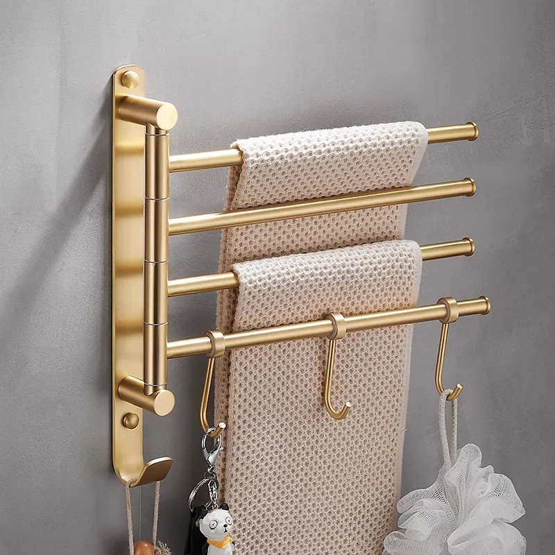 Light luxury all-copper rotating towel rack, no punching, gold towel bar hanging rod, bathroom wall hanging movable hook