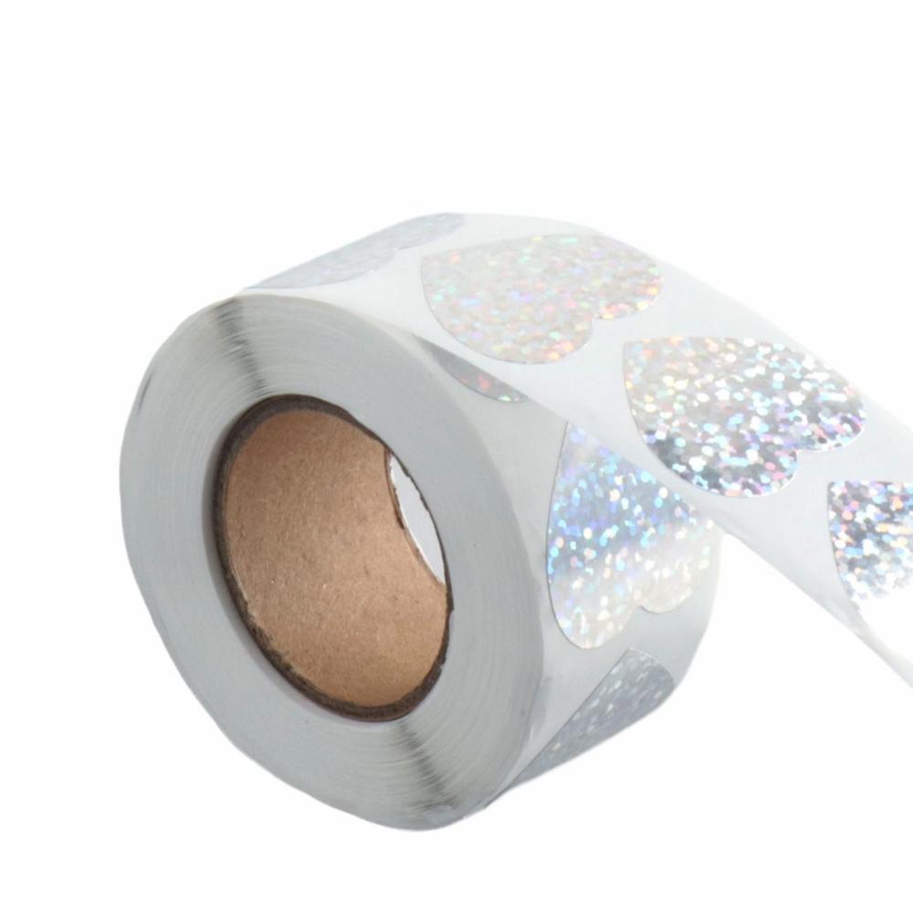 500 шт. подарочное сердце серебряная съемная наклейка-этикетка канцелярская наклейка самоклеящаяся