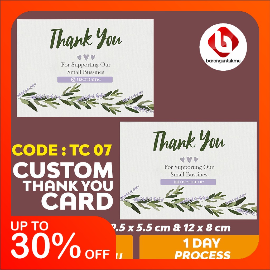 THANK YOU CARD ( CUSTOM ) UNTUK ONLINE SHOP