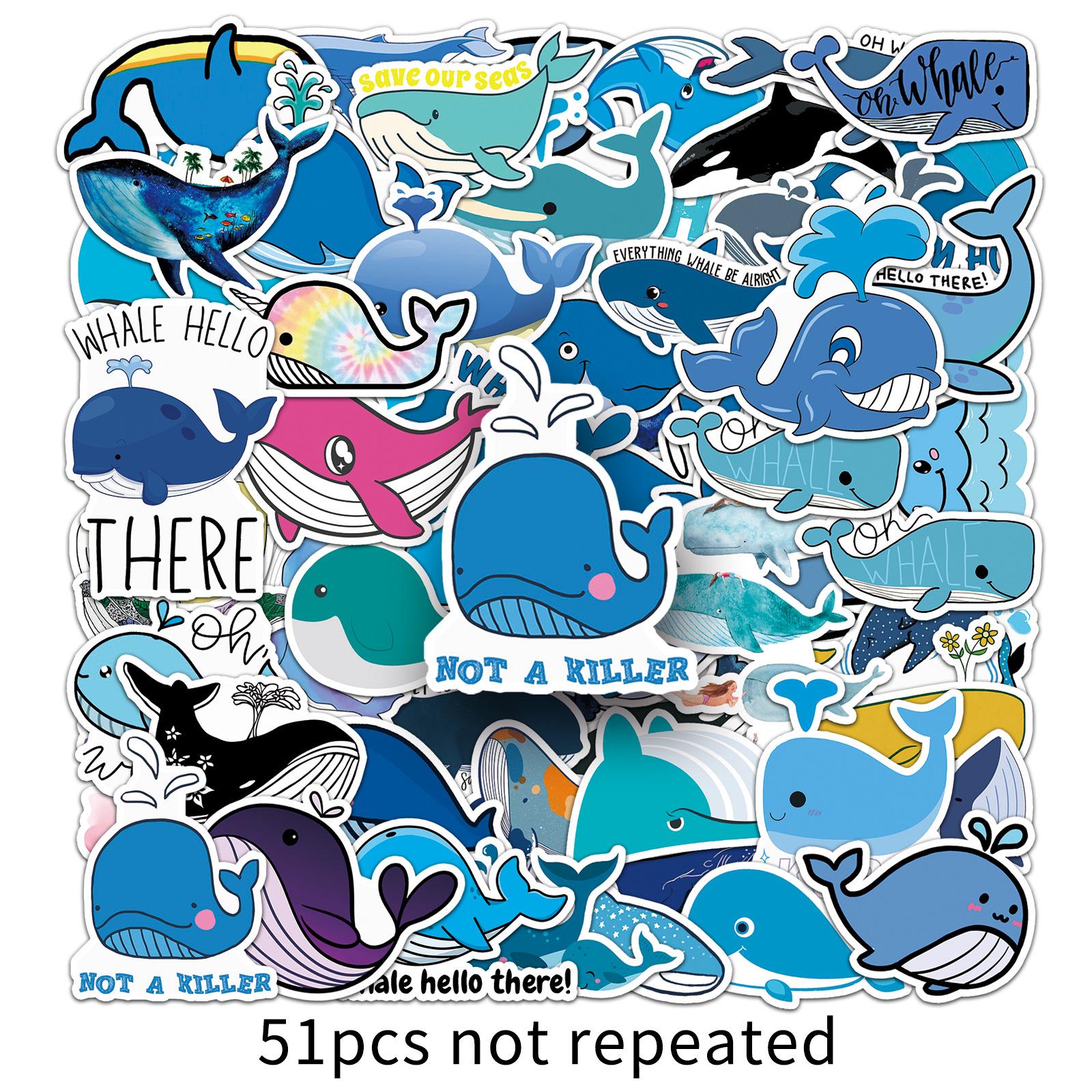 51 Стикер с граффити кита: Мультяшная морская жизнь для детей - Идеально для стаканов для воды, скейтбордов, чемоданов и канцелярских товаров для DIY.