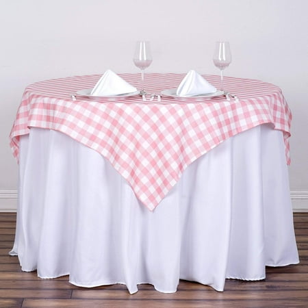 54 x 54 Rose Quartz Pink on White Square Gingham Checkered Polyester Tablecloth
