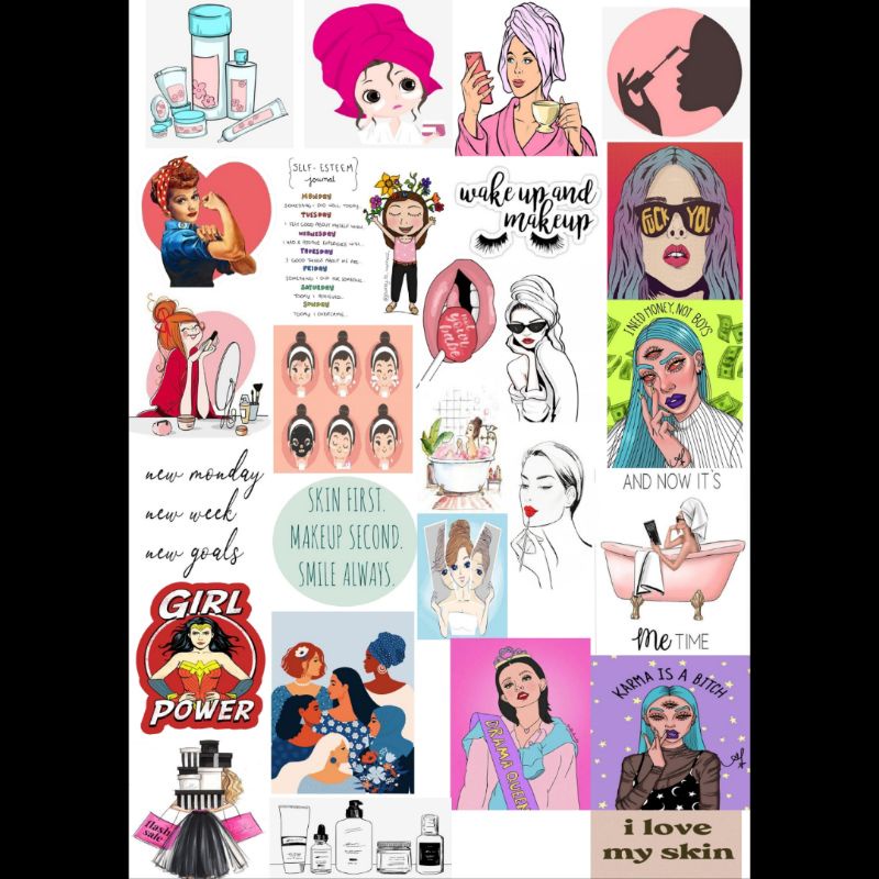55 PSC STICKER MAKEUP/SKINCARE RANDOM BAHAN KERTAS GLOSSY DAN DOVE RANDOM.