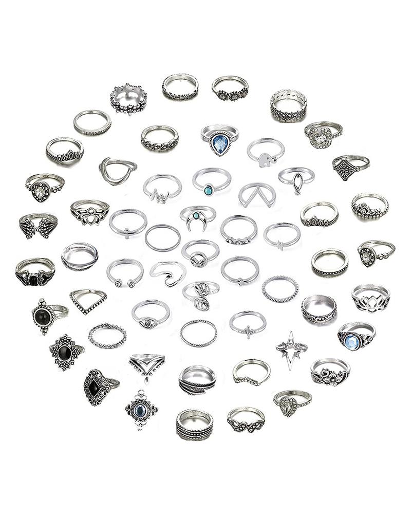 56PCS Rhinestone Decor Ring Set, Silver