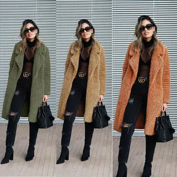 Women Lamb Velvet Long Coats 2020 New Year's Cardigan Lapel Thickening Coat Winter Warm Oversized Fleece Overcoat Lapel Fur Tops