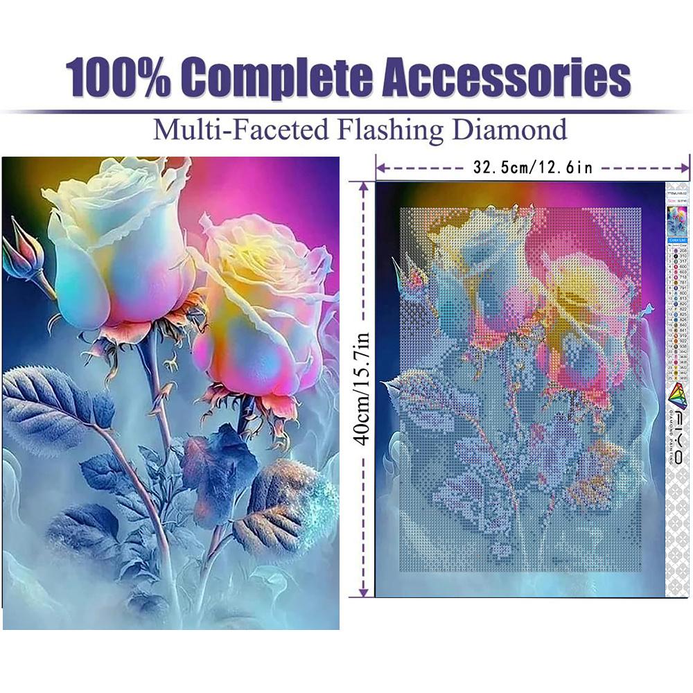 5D Алмазная картина Полная круглая дрель Алмазная красочная Роза Голубая бабочка Алмазная картина Ручная работа Diy Алмазная мозаика Картина Украшение дома Without a frame белый