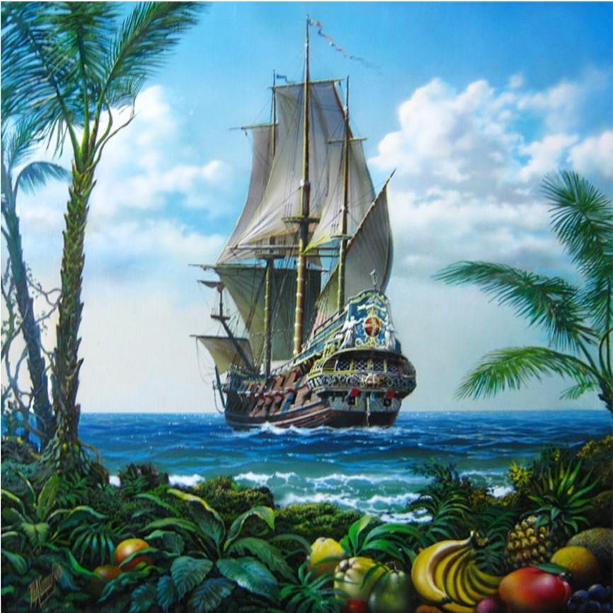 5D Ручная алмазная живопись Мозаика Работа Парусник парусный спорт в море площадь / круглый Алмазная вышивка Подарок или украшение