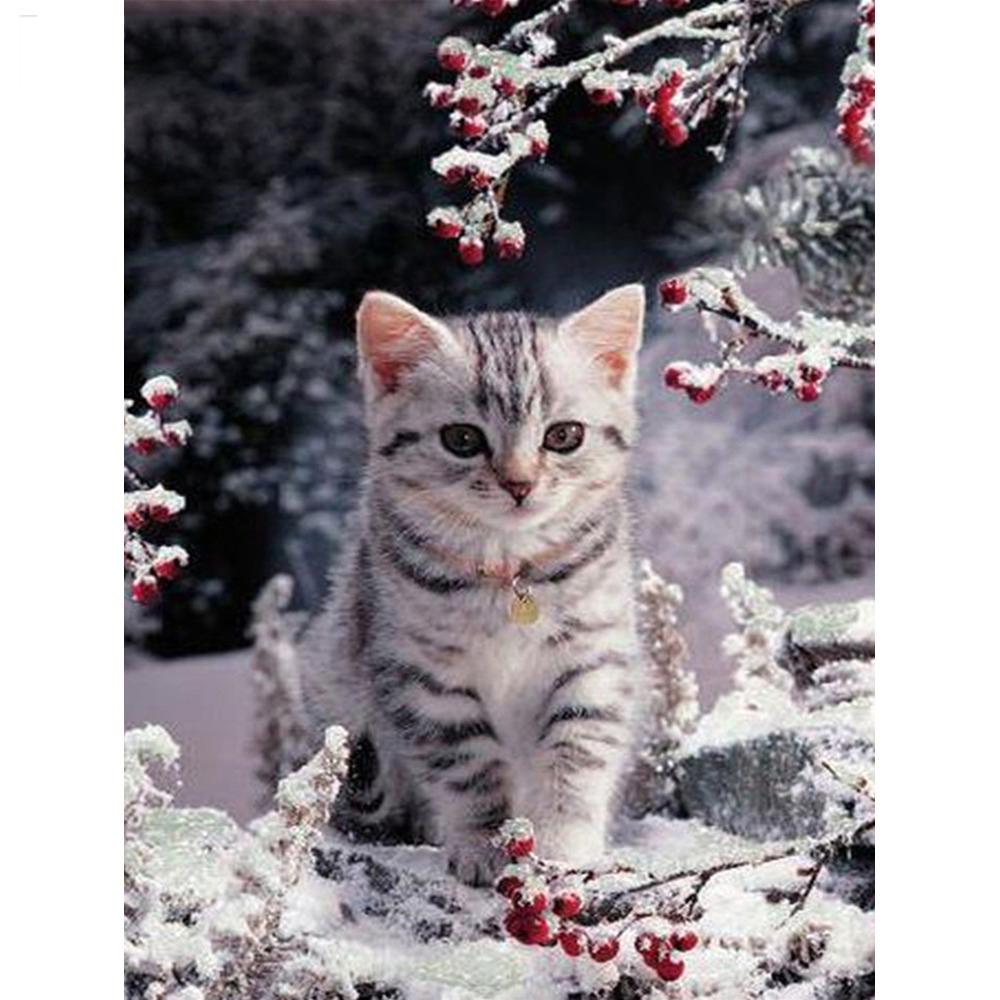5D Ручная алмазная живопись Мозаика Работа котенок Полный дрель Кваре / Круглый Алмазный Вышивка Подарок или Украшение