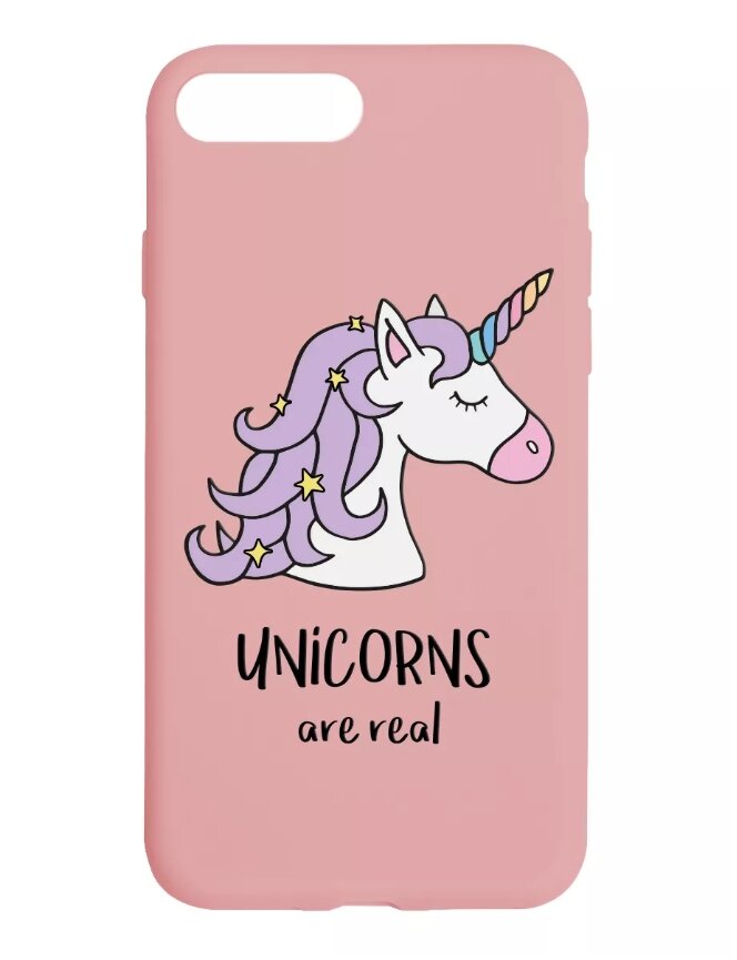 Чехол на iPhone 7 Plus, iPhone 8+ с принтом "Unicorns are real", Розовый, MATT iPhone 7 Plus