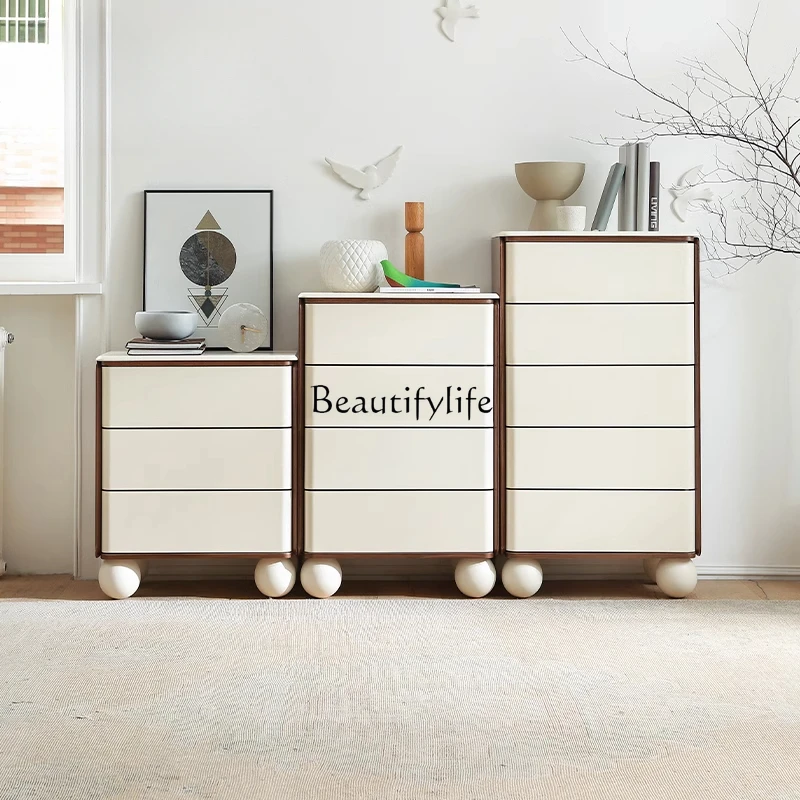French cream style bucket cabinet living room bedroom modern simple light luxury high-end bedside cabinet