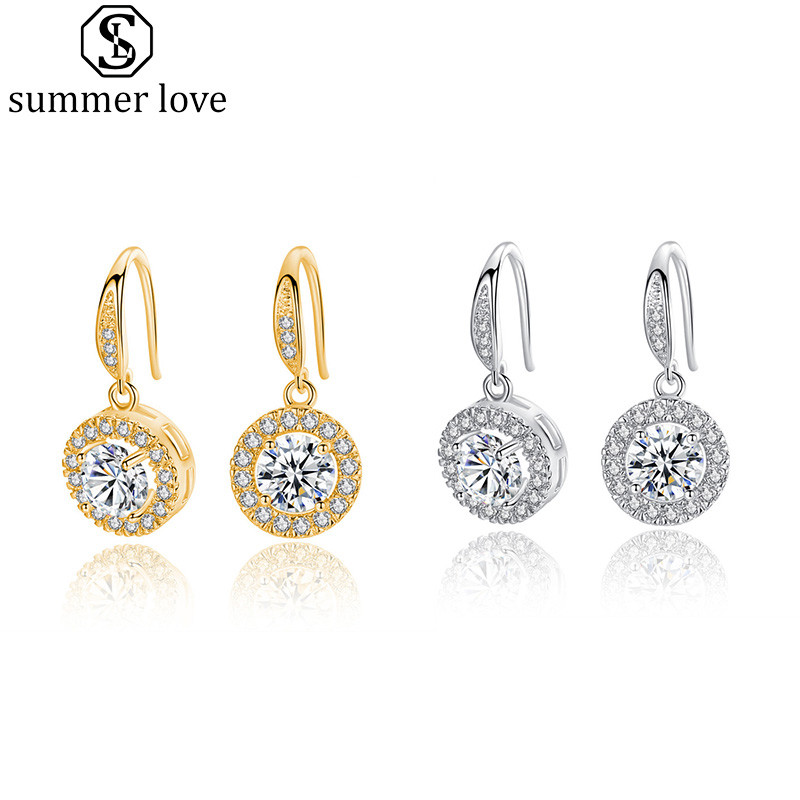 Classical Cubic Zirconia Halo Leverback Drop Earrings Gold Silve Color Ear Wires For Women Designer Hoop Earrings-Z