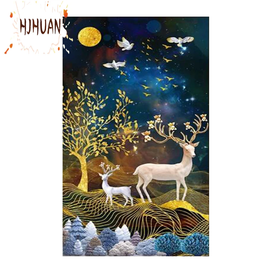 5D алмазная живопись «сделай сам», птица, деньги, дерево, олень, круглая квадратная мозаика стразы, Настенная картина, украшение для дома, под...
