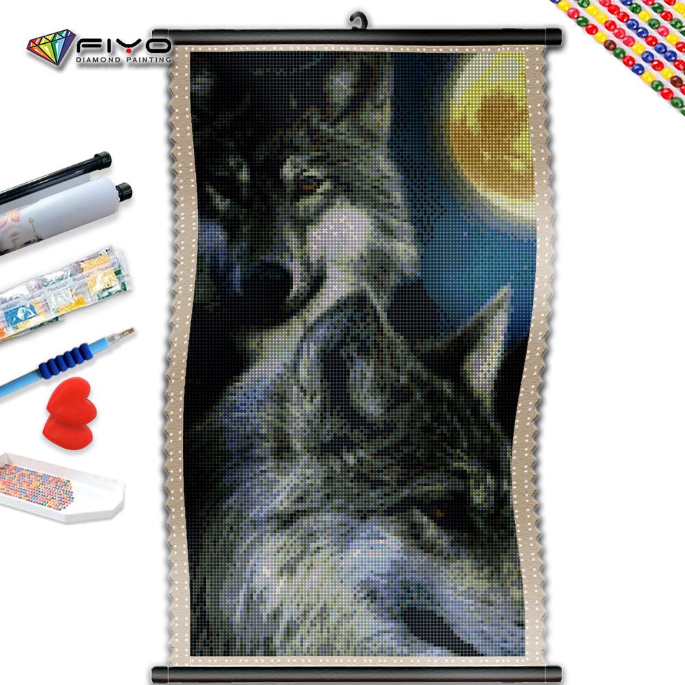 5D DIY Рамка Полный Квадратный Круглый Алмазная Картина Полная Луна Волк Вышивка Животных Мозаика Пейзаж Ручной Работы Подарок Домашний Декор