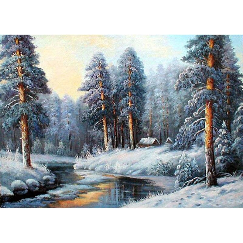 5D DIY алмазная живопись Снежная сцена Алмазная вышивка пейзажи вышивка крестиком ремесла полная круглая дрель домашний декор ручной подарок Full Round 40x50CM