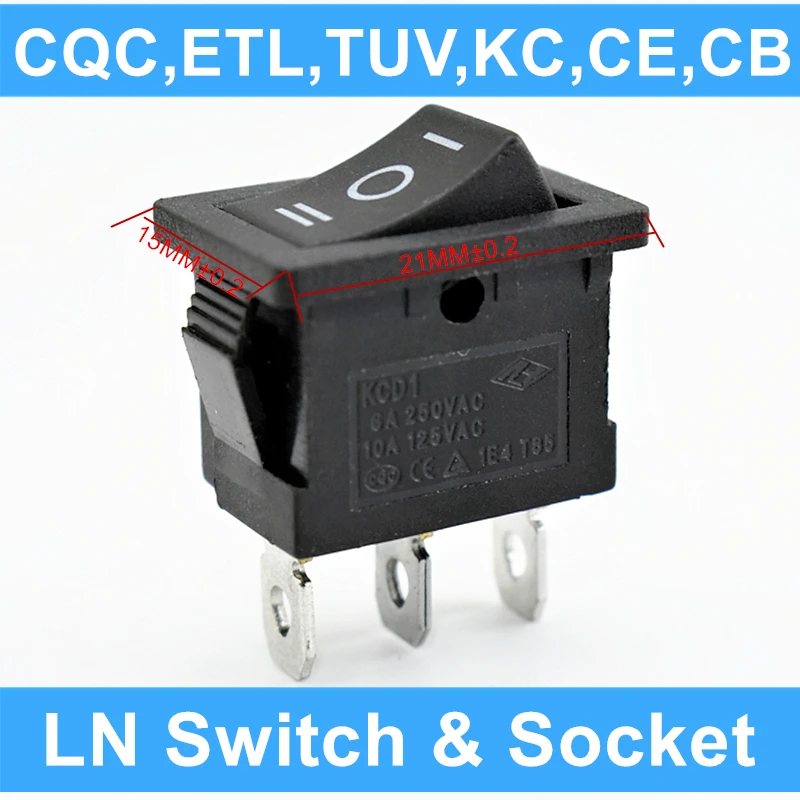 5PCS KCD1-103 ON-OFF-ON Switch Spdt Rocker Switch Black 3Pin Micro Push Button Toggle Switch 3 Position