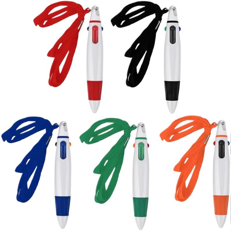 5Pcs Retractable ballpoint Pen with Lanyard Neck Pens in a Rope Shuttle Pen 4 Color Ink Ballpoint Pen