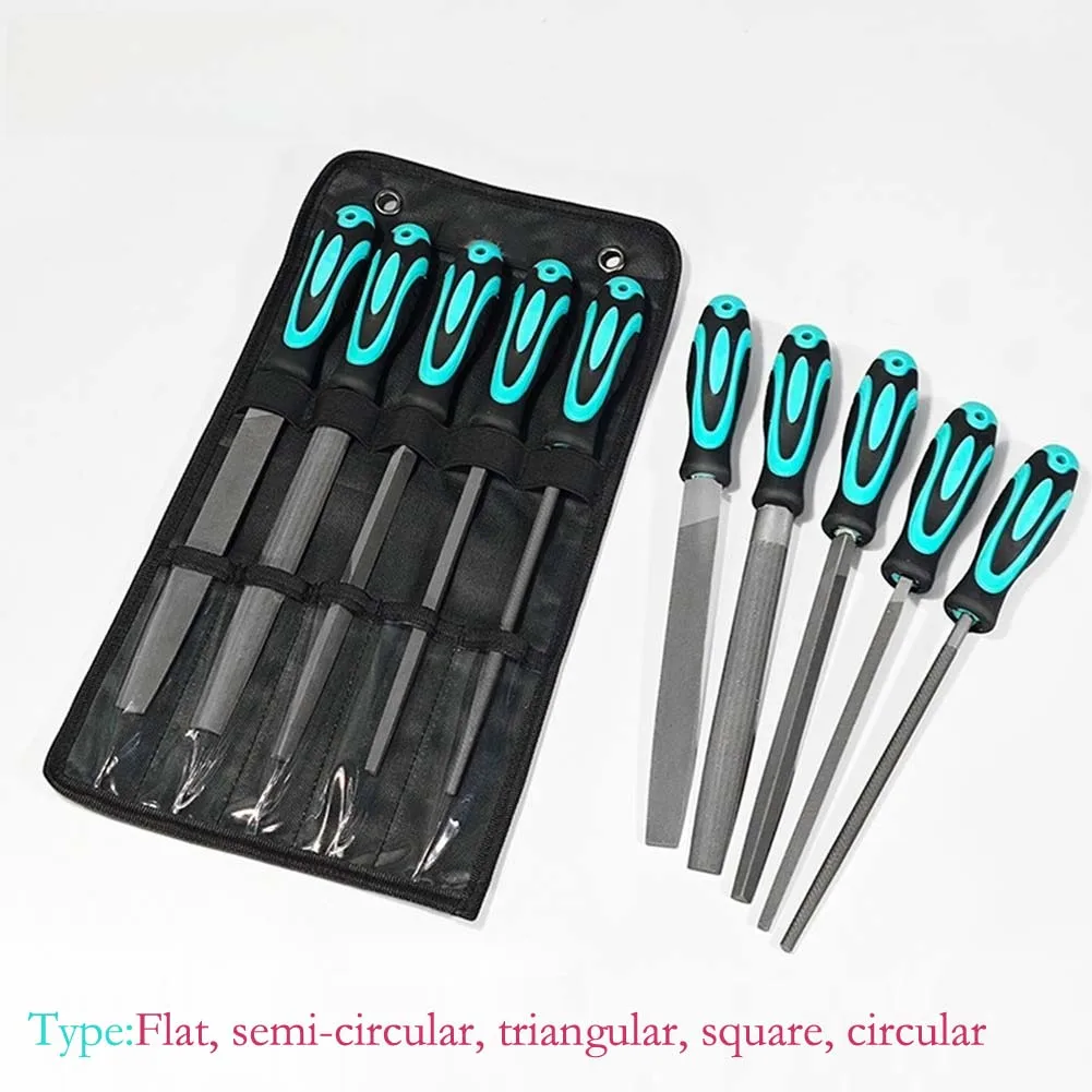 5pcs 8 Inch Carbon Steel File Set With Non Slip Handle Rasp File Needle Filing Woodworking File For Metal Wood Polishing Tool