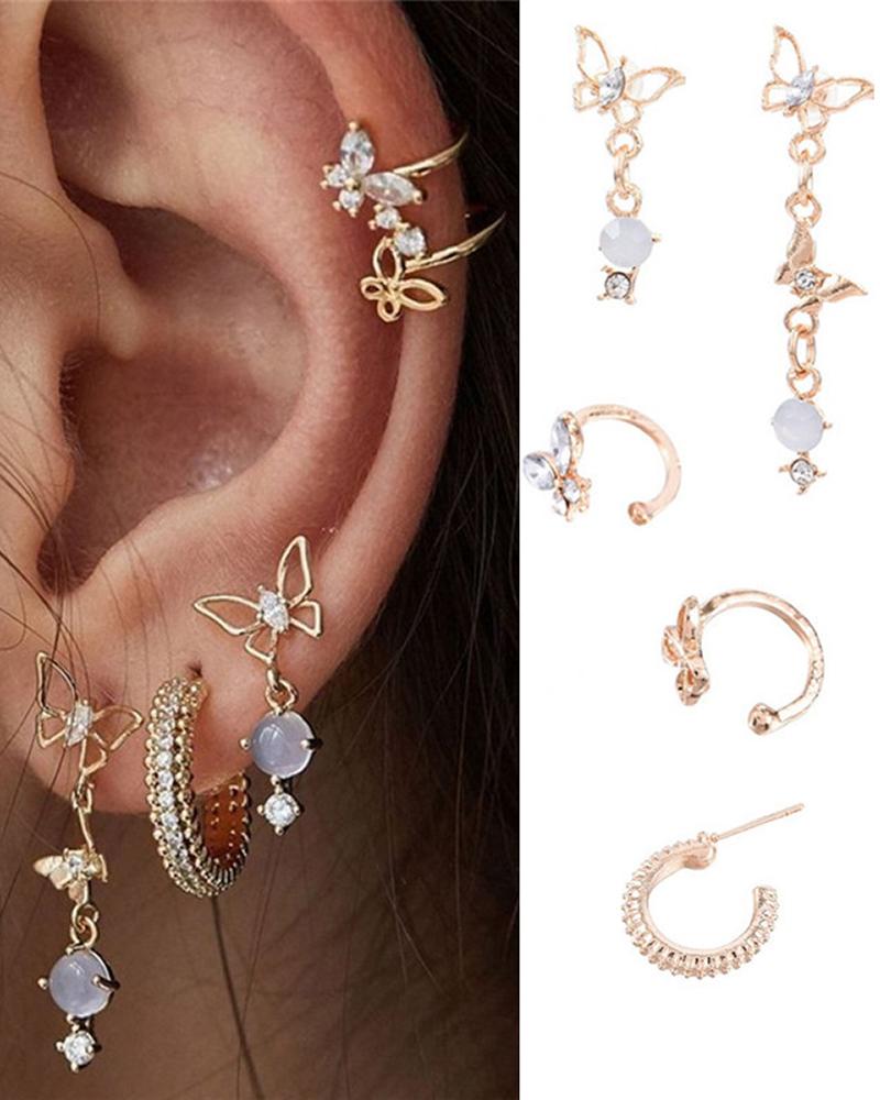 5pcs Butterfly Rhinestone Decor Earrings Set, Gold