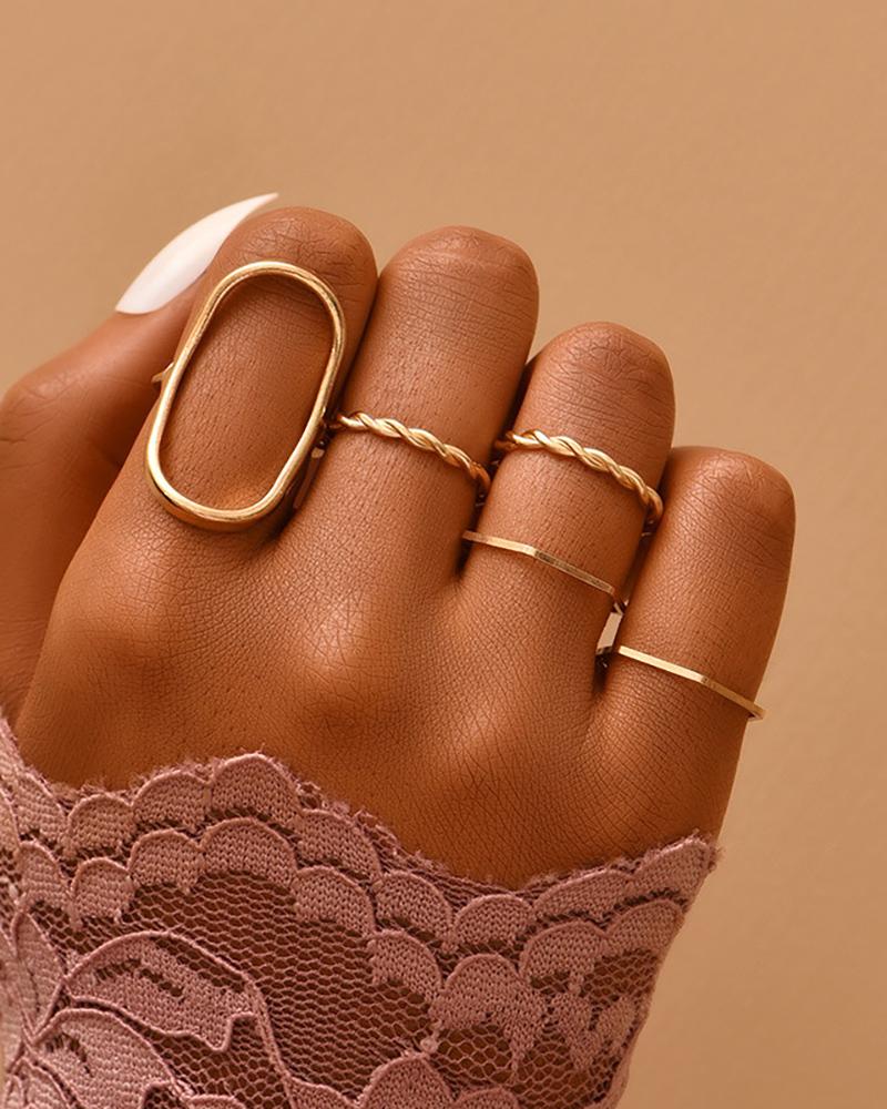 5pcs Hollow-Out Knuckle Stackable Geometric Pattern Rings Set, Gold