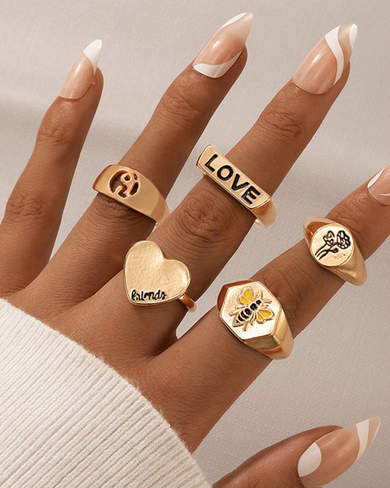 5pcs Valentine's Day Stackable Love Pattern Rings Set, Gold