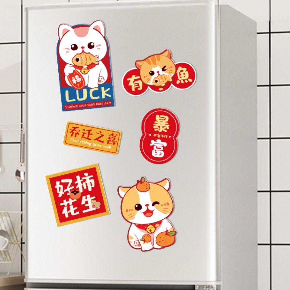 6шт мультфильм новогодние магниты на холодильник танец льва магнитная наклейка новоселье
