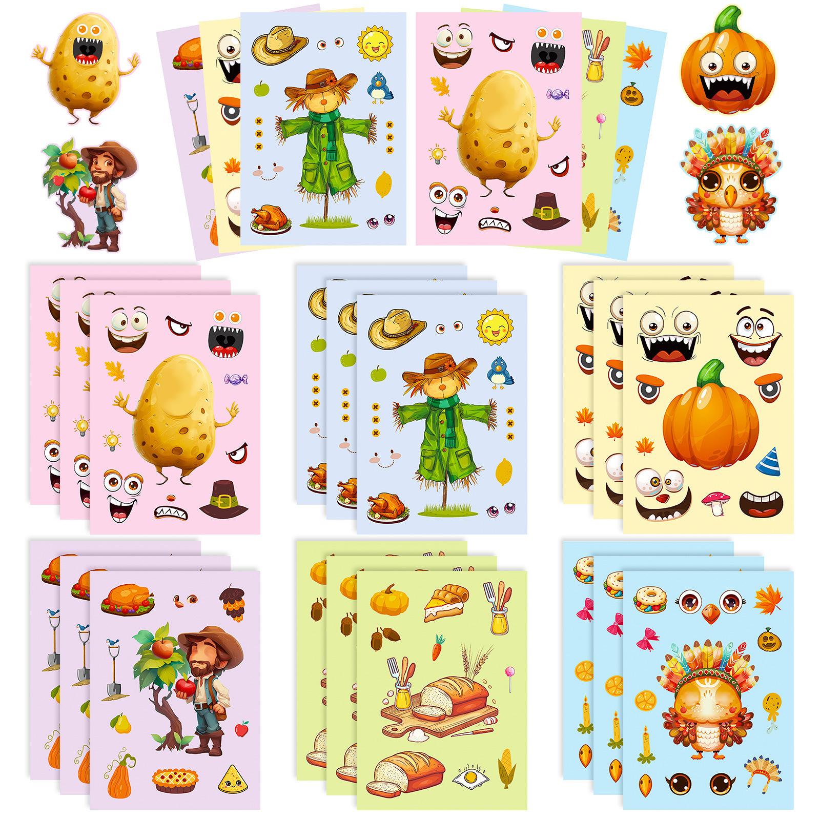 6 Фото/упаковка Наклейки Фестиваля Осеннего Урожая в честь Дня Благодарения Картофель Индейка Пазлы Наклейки Смена Лица