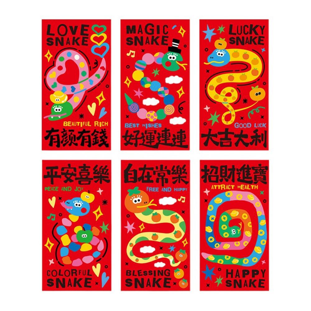 6 ШТ./КОМПЛ. Мешочек для денег с узором змеи, мультяшный каллиграфический красный конверт для дня рождения, свадьбы Style A