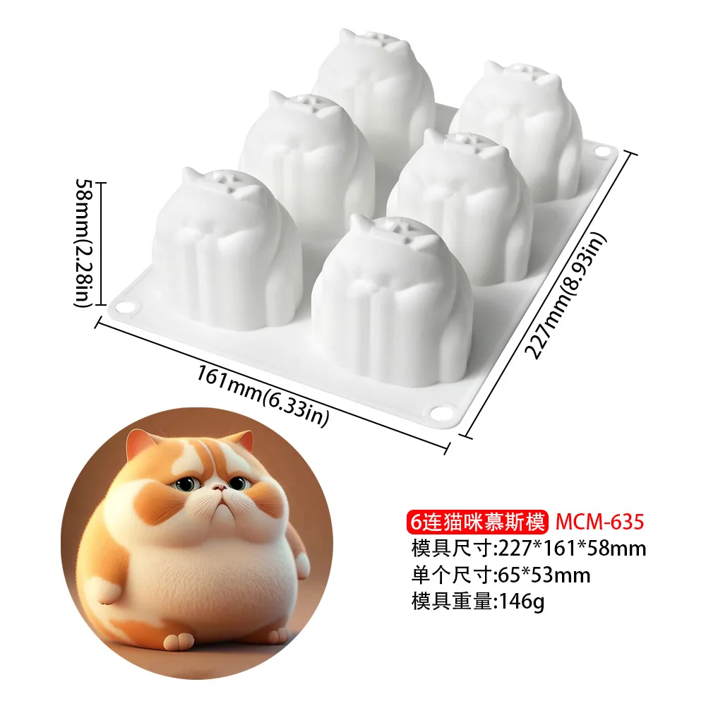6-в-рядная силиконовая форма с мультяшным котом, форма для измельчения кошачьего мусса, форма для торта, шоколадное молоко, желе, шлифовальный инструмент