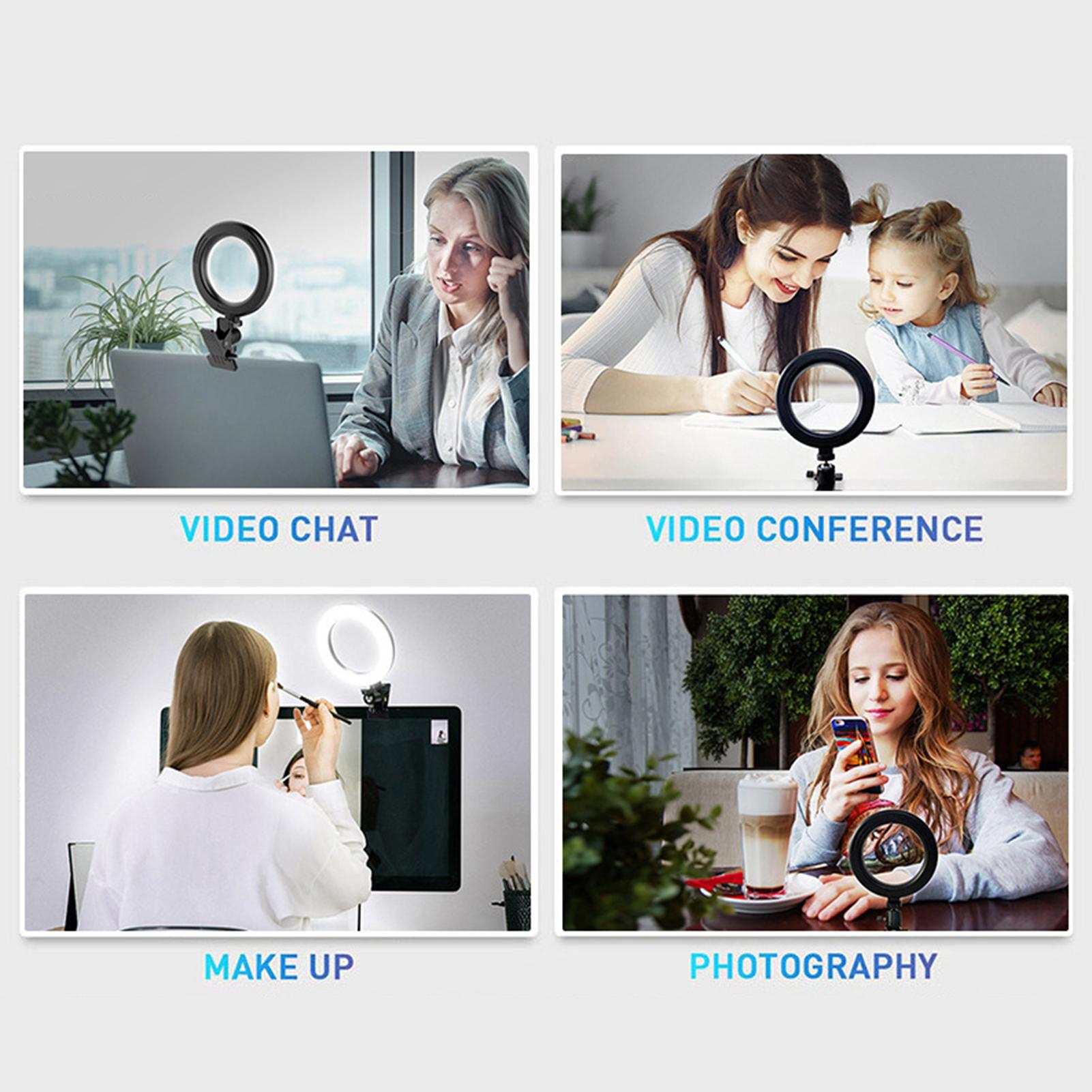 6-дюймовый светодиодный кольцевой светильник для селфи с зажимом, USB-управление, 3 цвета, изменение температуры/3 уровня