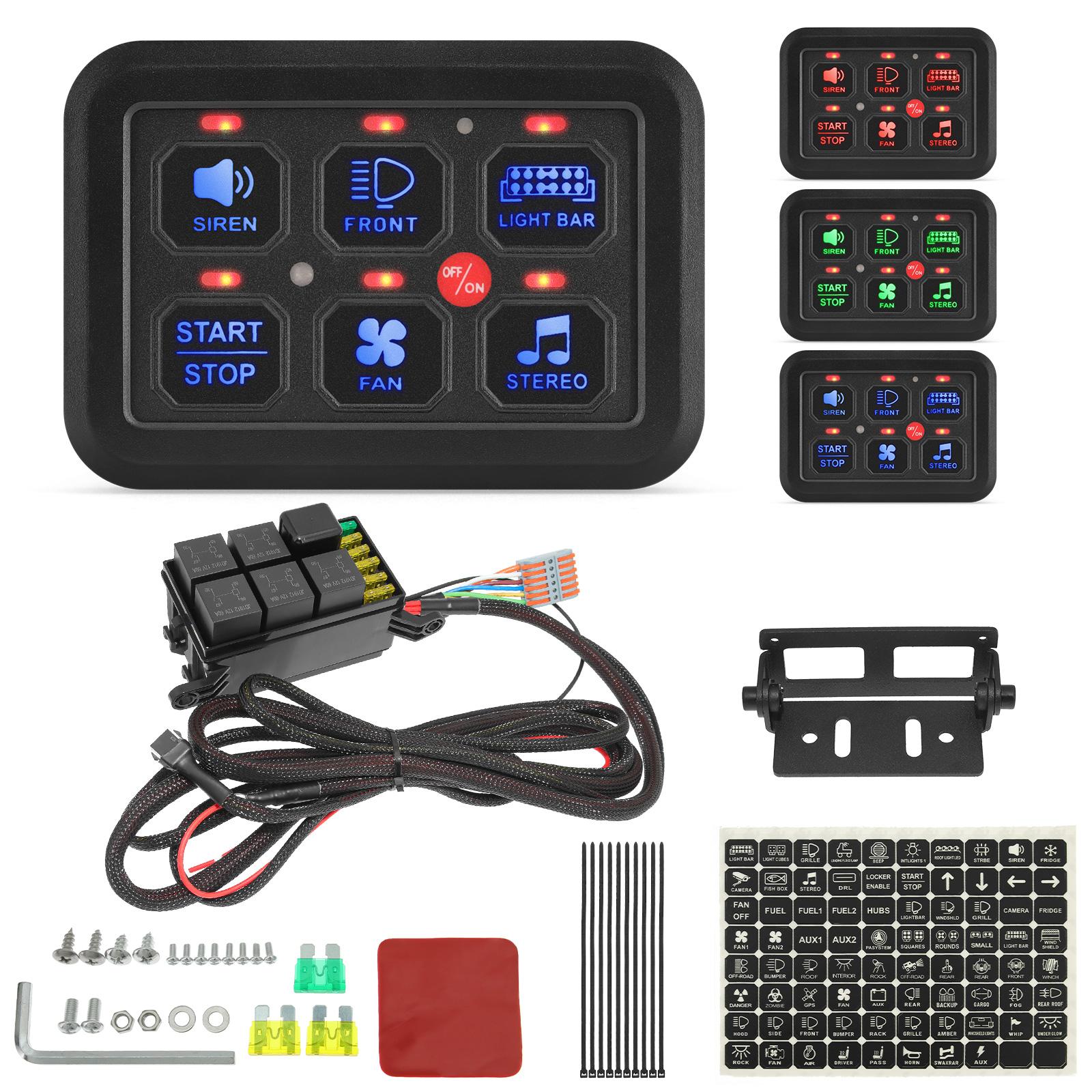 6-клавишная универсальная панель переключателей 7 цветов светодиодный контроллер переключателя цепи 600 Вт-1200 Вт электронная релейная система коробка для автомобиля ATV лодки Jeep