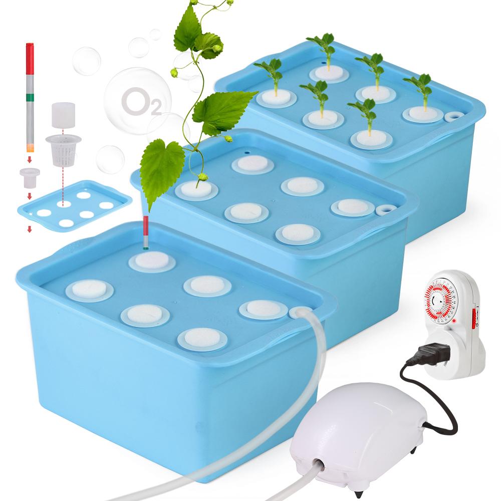 6-луночная система гидропонной культуры 5 л Воздушный насос Горшок для рассады Таймер Контроллер Контейнер для выращивания с губкой для рассады Синяя коробка для рассады
