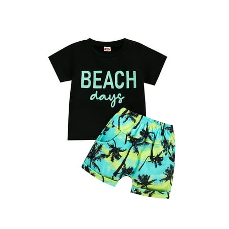 aturustex Baby Boys 2Pcs Clothes Outfit Round Neck Short Sleeve Letter Printed T-Shirt and Tree Printed Shorts