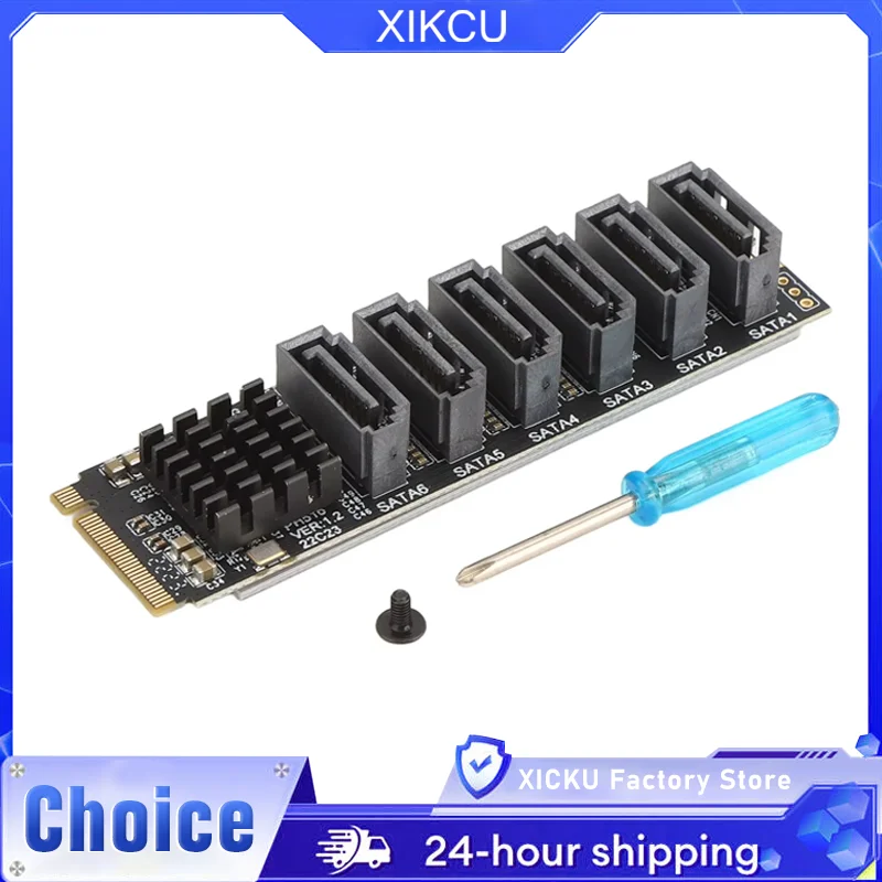 6-портовая плата расширения M.2 NVME M-Key PCIE 3.0 к SATA, 6 Гбит/с, расширенный жесткий диск NAS, адаптер PCI-E, переходная карта ASM1166 PM