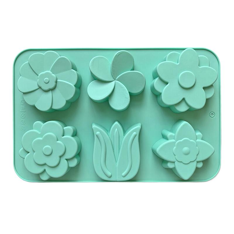 6-секционная силиконовая форма в форме цветка тюльпана, подходящая для мыла, свечей, ручного изготовления, торта, шоколада, десерта, выпечки зелёный