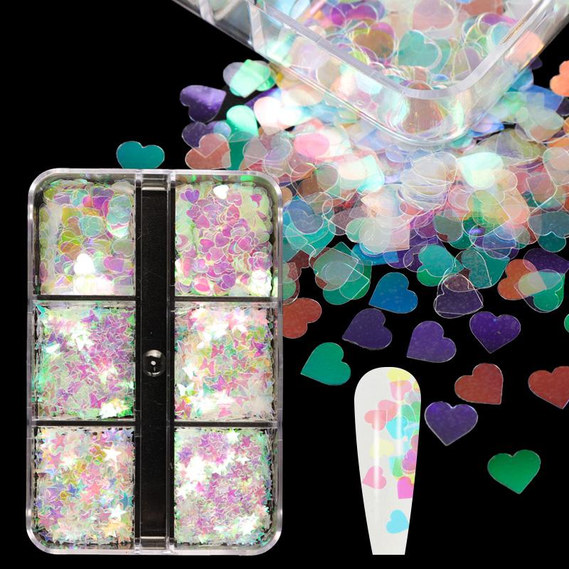 6 сеток в виде сердечек русалки, смешанные блестки, блестки для ногтей, украшения для любви на день Святого Валентина, аксессуары и инструменты для гелевых подвесок для ногтей, принадлежности