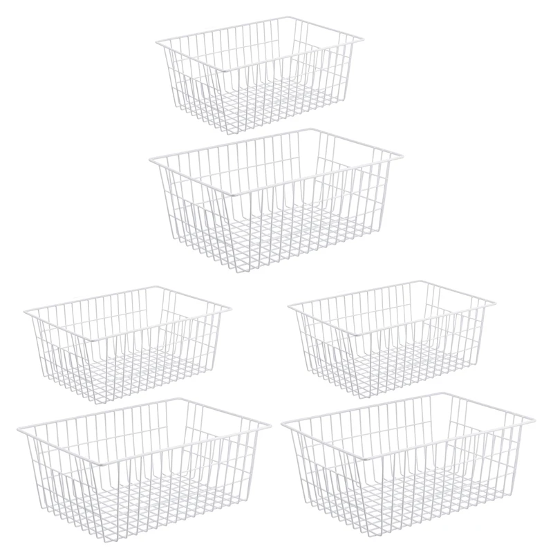 6 упаковок, корзины для хранения из проволоки, железная металлическая корзина для хранения в морозильной камере с ручками (белые)
