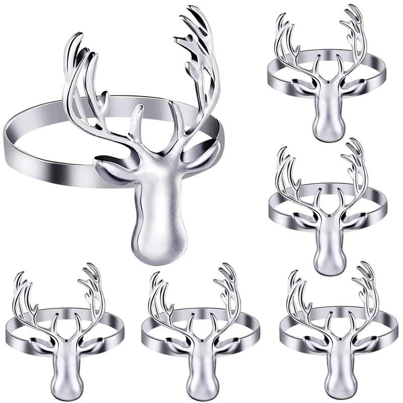 6 штук, искусственные кольца, рождественские металлические кольца для салфеток в форме лося на Рождество, свадьбу, праздничные Вечеринки, (серебристые)