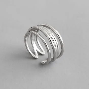 Ins Multi-layer Line Winding Real 925 Sterling Silver Rings For Women Fine Jewelry Open Ring High Quality Gift Designer 925-38