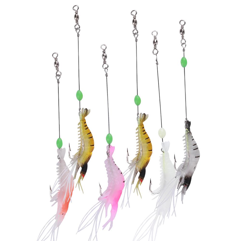 6 шт. Высокореалистичная мягкая светящаяся искусственная приманка в виде креветки, рыболовная снасть с крючком