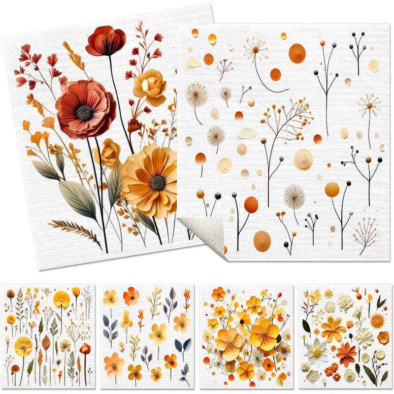 6 шт. Оранжевые салфетки для мытья посуды с цветочным принтом, экологичные кухонные тряпки, впитывающие полотенца для посуды, многоразовые моющиеся чистящие салфетки 6 PCS разноцветный