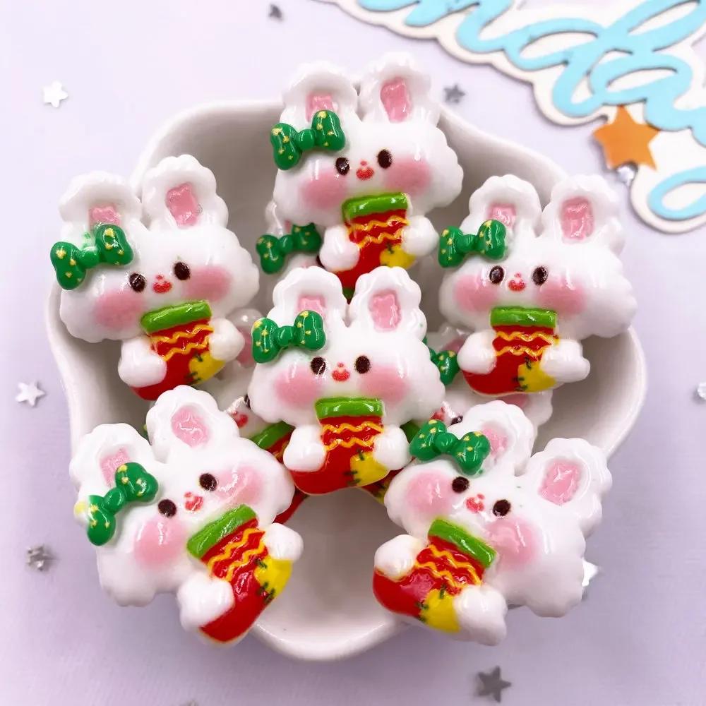 6 шт. Смола Красочный Санта Клаус Мальчик Девочка Медведь Кролик Лось Плоская спинка Камень Мультяшные Рождественские Фигурки Скрапбукинг DIY Декор