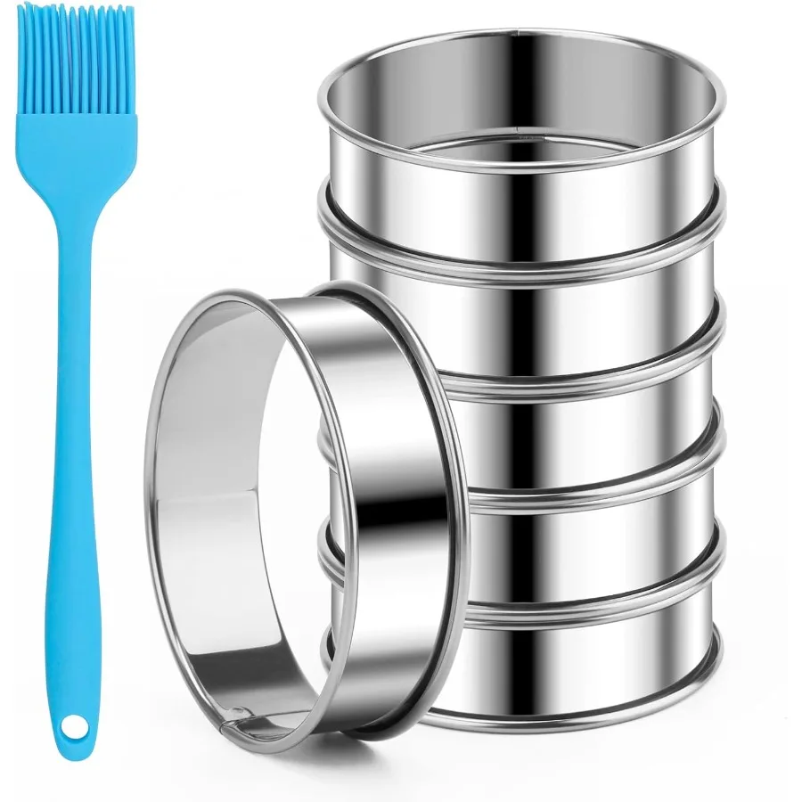 6 шт., английские кольца для маффинов 3,15 Ih, кольцо для пышек из нержавеющей стали, двойное свернутое кольцо для пирогов, антипригарные металлические круглые формы для колец с