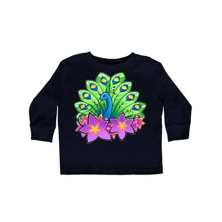 Inktastic Peacock and flowers Gift Toddler Boy or Toddler Girl Long Sleeve T-Shirt