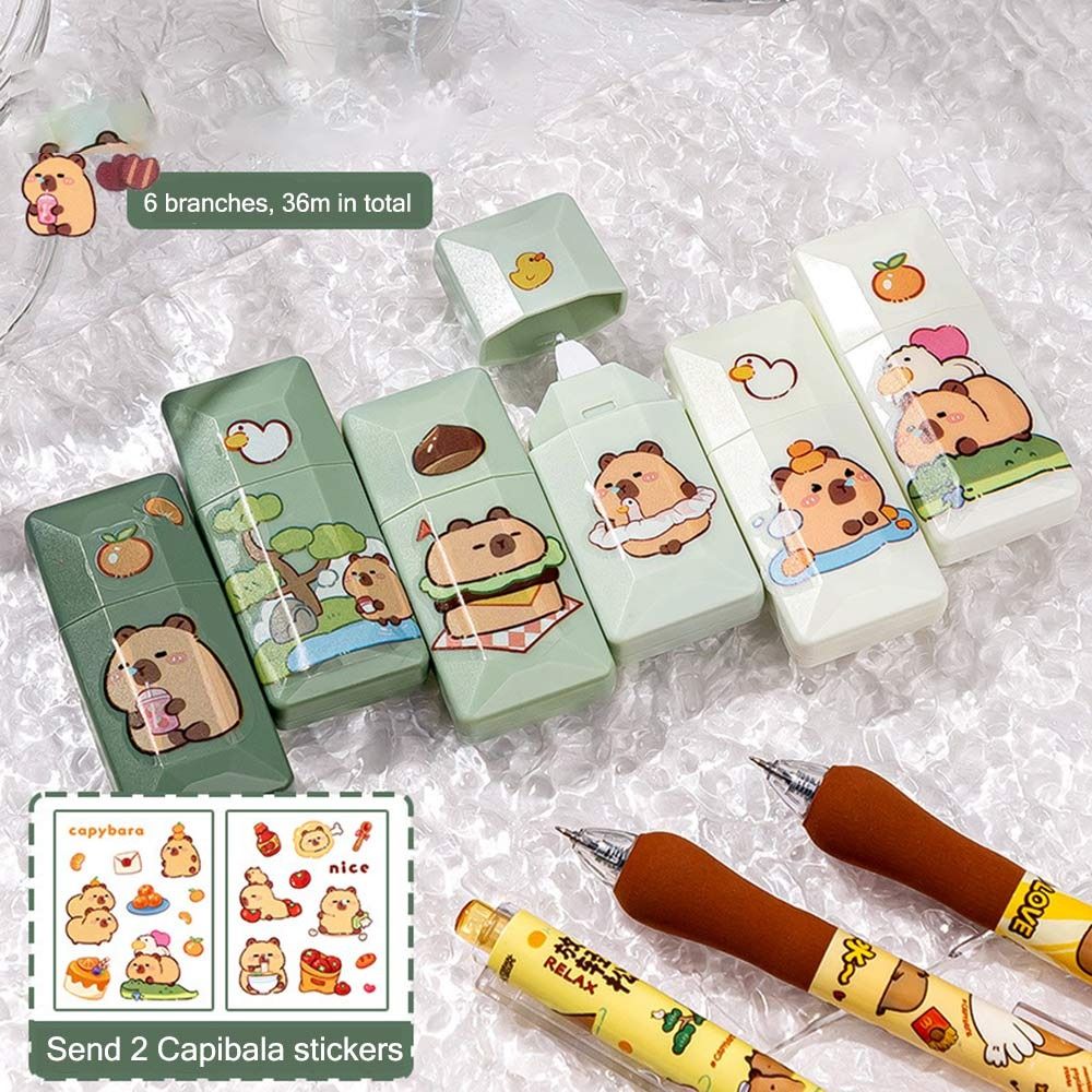 6 шт./компл., бесшумная лента с покрытием, коррекция капибары, канцелярские принадлежности, корректирующая лента, студенческий подарок